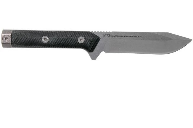The ANV M73 Kontos is a remarkable fixed knife, designed in cooperation with the 73rd Tank Battalion of the Czech Armed Forces. The shape of the blade might remind you of the front ot the T-72Ms tank. In fact: the pommel, also called the butt cap is made from an original pin from the tracks of a T-72 tank. Very unique! In addition, the guard is shaped as such that it has the same shape as the dome of that tank. The first, numbered edition of the M73 Kontos was given to the members of the 73rd tank battalion and is not available to the public. With this version of the Kontos the M73 becomes available to all!