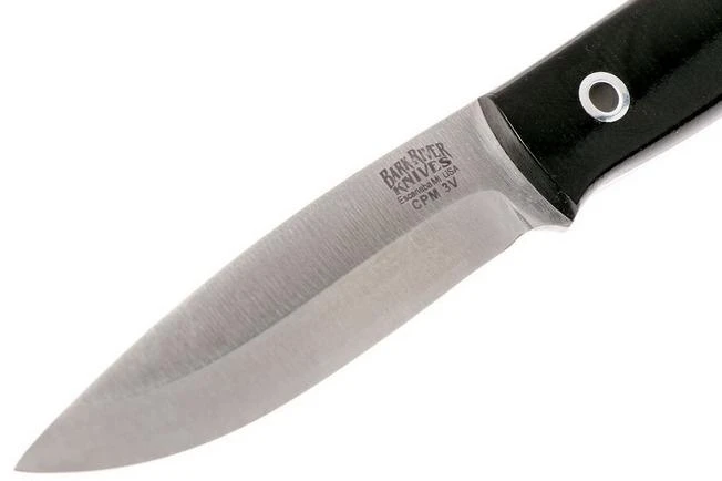 Bark River Mini Bushcrafter CPM 3V, Black Canvas Micarta, Hollow Pins