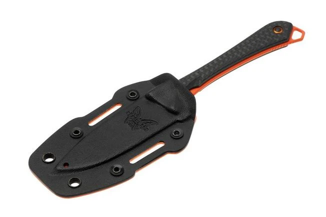 The Benchmade Altitude 15201OR is a lightweight hunting knife. This knife was designed after receiving feedback from dedicated fans. The minimalist fixed blade has a full-tang construction for extra strength and the scales are made from carbon fibre. This knife can be worn around your neck, and it might very well become your most-used outdoor knife. The end of the handle features a lanyard eye, to which you can attach paracord. The orange blade makes it easy to find this knife should you accidentally drop it.