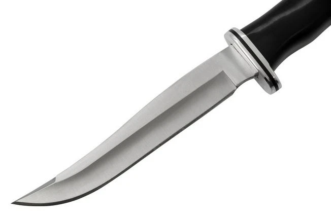 The Buck 0105BKS Pathfinder Black hunting knife is a classic fixed knife for hunting. You could consider it to be the baby brother of the famous Buck 119. The pointed tip stands out. Buck calls this a ‘modified clippoint’. Great for precision tasks.