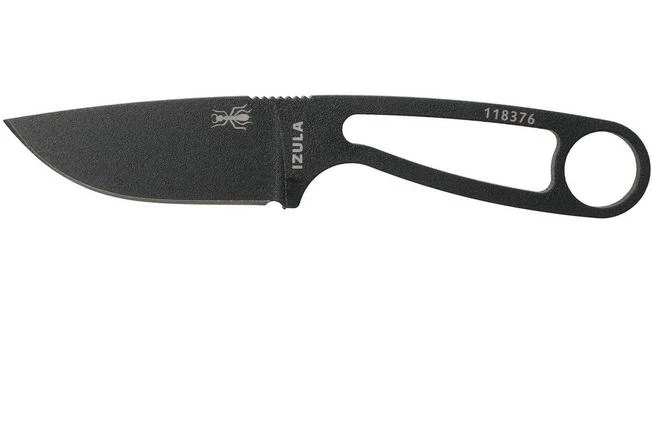 The ESEE Izula Tactical Gunsmoke is named after an aggressive ant from the Peruvian jungle. This is to emphasize that despite its size you shouldn’t underestimate this knife. The ESEE Izula is a versatile fixed knife. It will easily find a place in a bag or backpack or can be carried as a neck knife. Despite its size you can easily hold it. At the back you will find a large opening for your little finger to make sure you have an excellent grip. You could, of course, also make a paracord handle to increase the grip. And if you prefer a real handle ESEE also delivers those as an accessory. This, of course, will make the knife a little thicker.