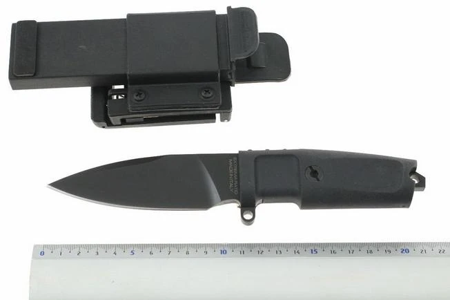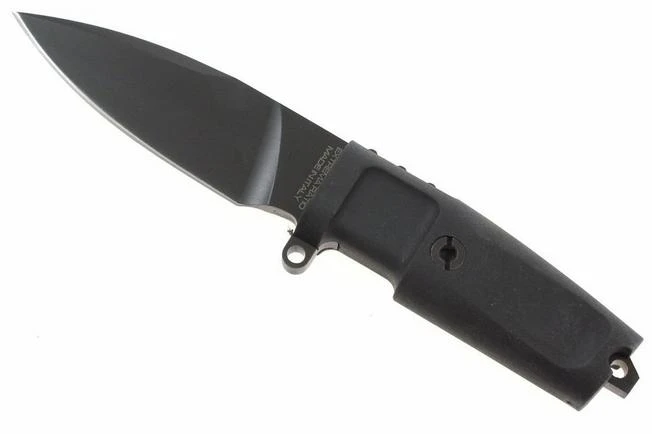 A truly versatile “back up” with striking combat qualities. The leaf blade is characterised by a wide flat grinding, with a narrow whetting angle that makes it particularly sharp. The automatic hard sheath has a tek-lok which means it can be positioned either vertically or horizontally. The only security on the sheath is automatic with a pressure point for removal and insertion, this makes it a knife for intuitive and extremely rapid use, ideal in an emergency.