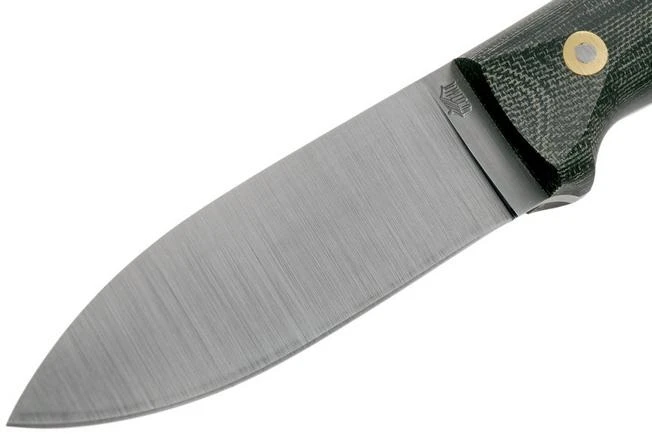 The LT Wright Genesis Flat is a cool and popular bushcraft knife, made in the United States. In terms of shapes it is a little like the archetypical bushcraft knife: simple but good. The handle looks simple, and it is. After all, simple works. You have enough grip over this ‘broomstick’ handle no matter how you hold it. Whether you are notching, feathersticking or cooking. The deep cut-outs at the front of the handle and side are perfect for your thumb. Great during a ‘chest-lever’ cutting movement, or when gutting game. As such you will always be 100% sure how you hold the knife. Even in the dark.