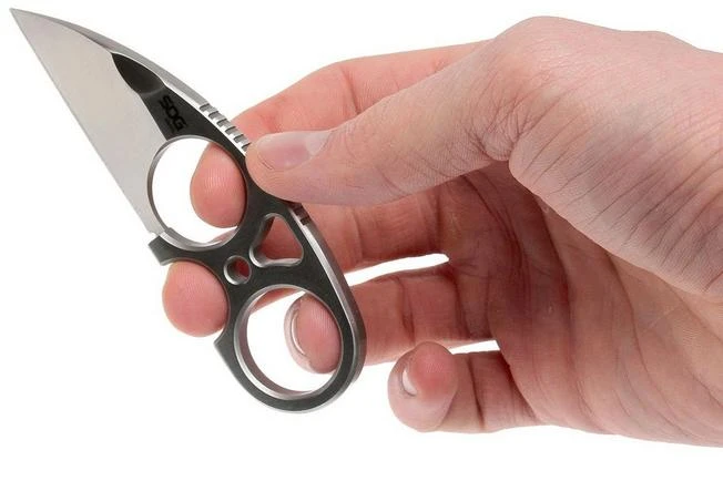 The SOG Snarl JB01K-CP is a neck knife designed by Jason Brous. This designer has 10 years of experience as a CNC operator and because of this, he is familiar with knife production. He applies his experience and knowledge to his knife designs. His knives are characterised by a functional and imaginative design. What’s special about this knife is the very compact size. When it comes to grip, there are several possibilities: use the finger holes, the finger groove or both. Combined with the jimping on the spine of the blade, the grip is very sturdy. The blade is made from stainless 9Cr18MoV steel: easy to sharpen and good sharpness retention. The knife can be carried in a secure and practical way in the nylon sheath it comes with. This sheath has a pocket clip, so you can discreetly attach the knife to your pants or belt. The knife also comes with a cord, so you can carry the knife around your neck: less discreet, but it does honour the knife’s name.