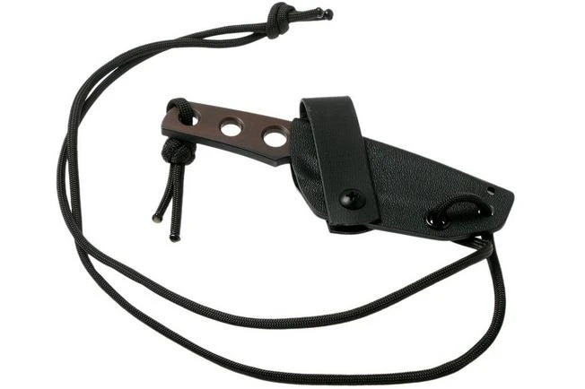 The TRC Mini Tanto is a great neck knife. Remarkable about the TRC Mini Tanto is the finish. For this knife they partly left the finish of the M390-steel blade as it was when it came from the oven. They call this the Apocalyptic finish. A brown-bronze look with an occasional blue, green or orange stripe. This Apocalyptic finish is unique on each knife. It makes the TRC Mini Tanto very special and indispensable in any knife collection. Please note: TRC states that the Apocalyptic finish is slightly more sensative to rust. In time your knife will therefore look even tougher. A nice detail is how they gave the tanto-tip a satin finish. It adds some contrast and makes the knife even more appealing to look at.
